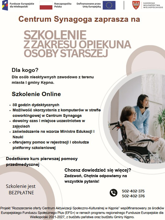 Szkolenie realizowane jest w ramach projektu: Rozszerzenie oferty Centrum Aktywizacji Społeczno-Kulturalnej w Kępnie